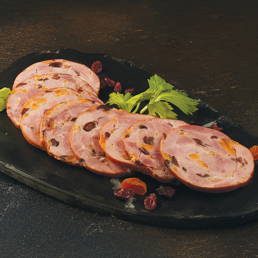 Tajadas de jamón ahumado con chispas de arándano y albaricoque. Estás listo para sorprender y ser sorprendido.